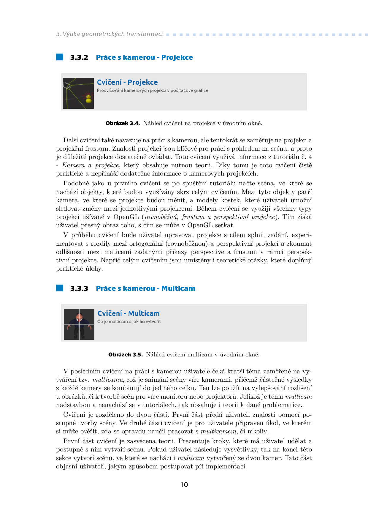The Interactive Tool for Teaching Transformations (I3T) program was created to help students understand the complex concepts of graphical transformations. This thesis aims to test the usefulness of this program and investigates whether it is suitable for inclusion as a teaching tool in computer graphics courses. Based on an analysis of the I3T program, specific topics were selected in which the I3T tool could help students due to its ability to interact and visualize. Furthermore, a testing process of the usefulness of this program was created, and the results were evaluated using 80 sets of answers. Quantitative tests were designed to test the tool's utility in the selected graphic topics. For the same topics, new exercises were designed into the teaching program. Six new exercises which improve students' knowledge of transformations used in computer graphics were created as part of the bachelor thesis. The main result is the preparation and implementation of testing the effectiveness of I3T in teaching. Quantitative tests have confirmed that I3T helps in teaching geometric transformations and is more effective than traditional teaching methods. The results of students who used I3T during the seminar were 9 percent better than those of students who attended traditionally taught seminar. These values can be seen from the measured values, where the average improvement of the I3T group was 2.77 out of 22 points, while the improvement of the whiteboard group was only 0.79 points.