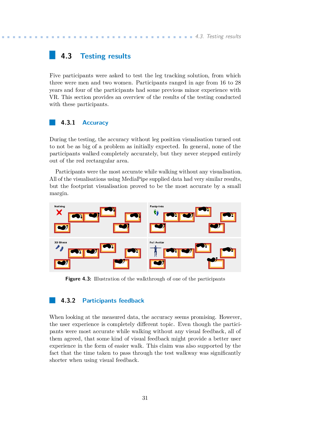 Seemingly minor incidents, such as tripping or slipping, can be life-changing. This is particularly true for the elderly, as the risk and severity of fall-related injuries increase with age. In recent years, fall prevention has become a critical area of research and many techniques and methods were proposed. With the emergence of Virtual Reality (VR) technologies many possibilities to enhance these techniques have become available. This thesis explores the potential use of virtual reality technology in enhancing the sensorimotor walkway exercise for elderly individuals. The utilization of VR aims to increase exercise attractiveness and social interaction while stimulating the somatosensory system of the individual. During the thesis a prototype VR application to verify the importance of leg tracking was developed and tested. This was followed by the development and testing of the PhysioBridge application. For the patients, it provides a comprehensive VR experience during the exercise. For the physiotherapist a control application for Android smartphone was developed. The thesis concludes with the design of large-scale study to research the contribution of the virtual reality for the sensorimotor walkway exercise.