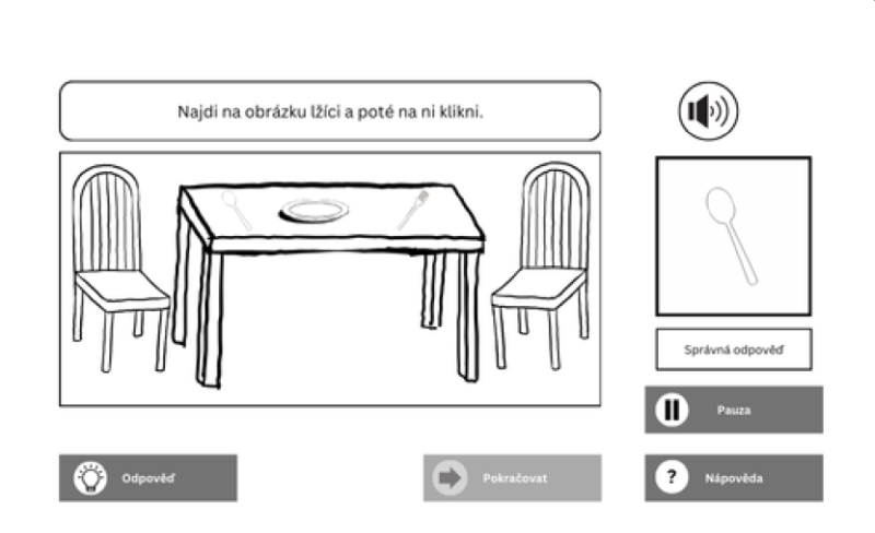 The bachelor thesis describes the process of creating a game for developing the skills of children with autism spectrum disorders. Specifically, it focuses on the skill of recognizing and naming objects that children commonly encounter. First, user research is conducted, both through a literature search and interviews with two caregivers of children with these disorders. Next, existing solutions are analyzed. This analysis was based on a systematic literature review. Finally, the process of developing such a game is described, including design, implementation and testing. The advanced game prototype is built in the Unity game engine and is designed for mobile devices. This prototype was tested with three representatives of the target user group. The feedback provided by the testing was eventually incorporated into the final prototype.