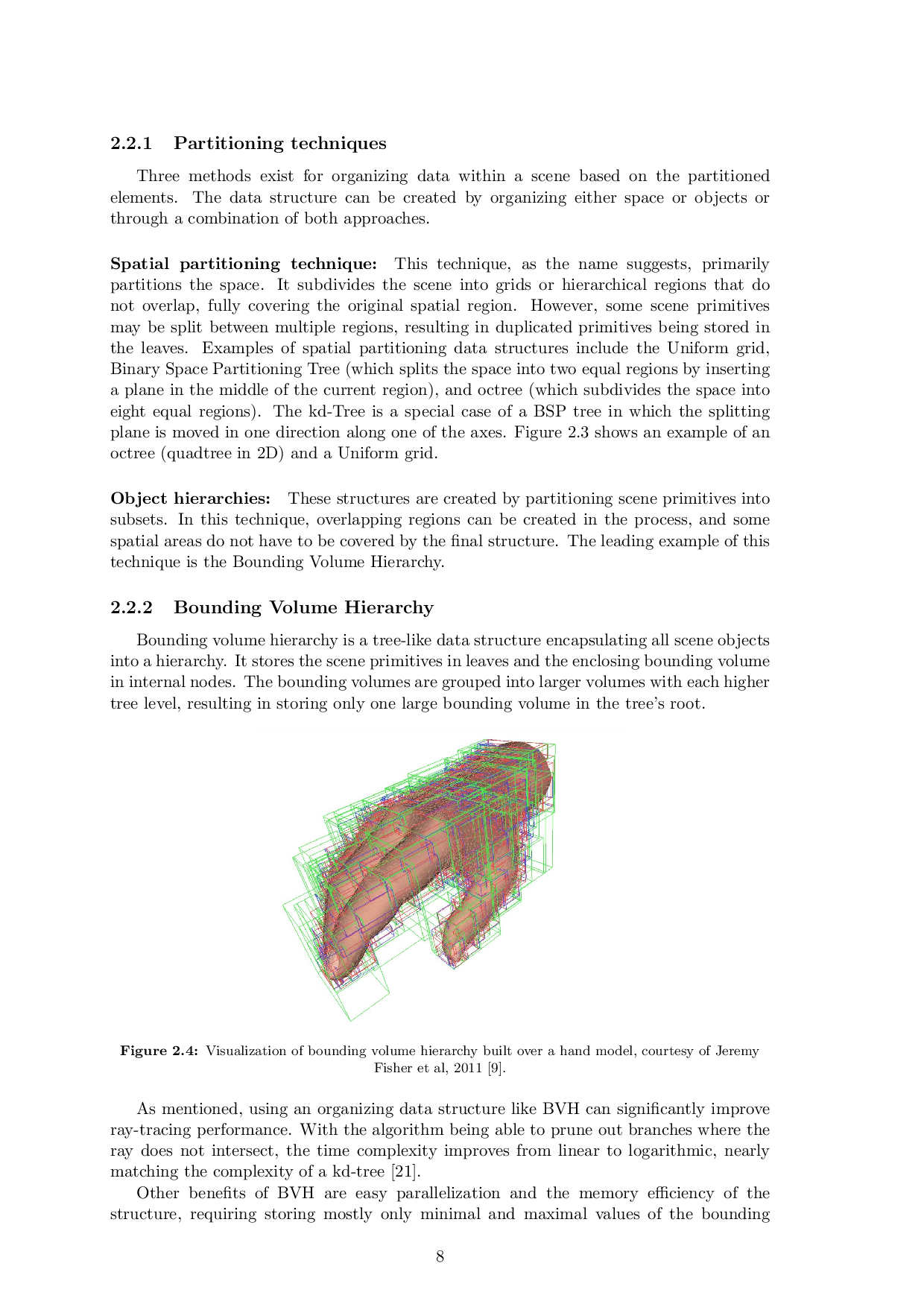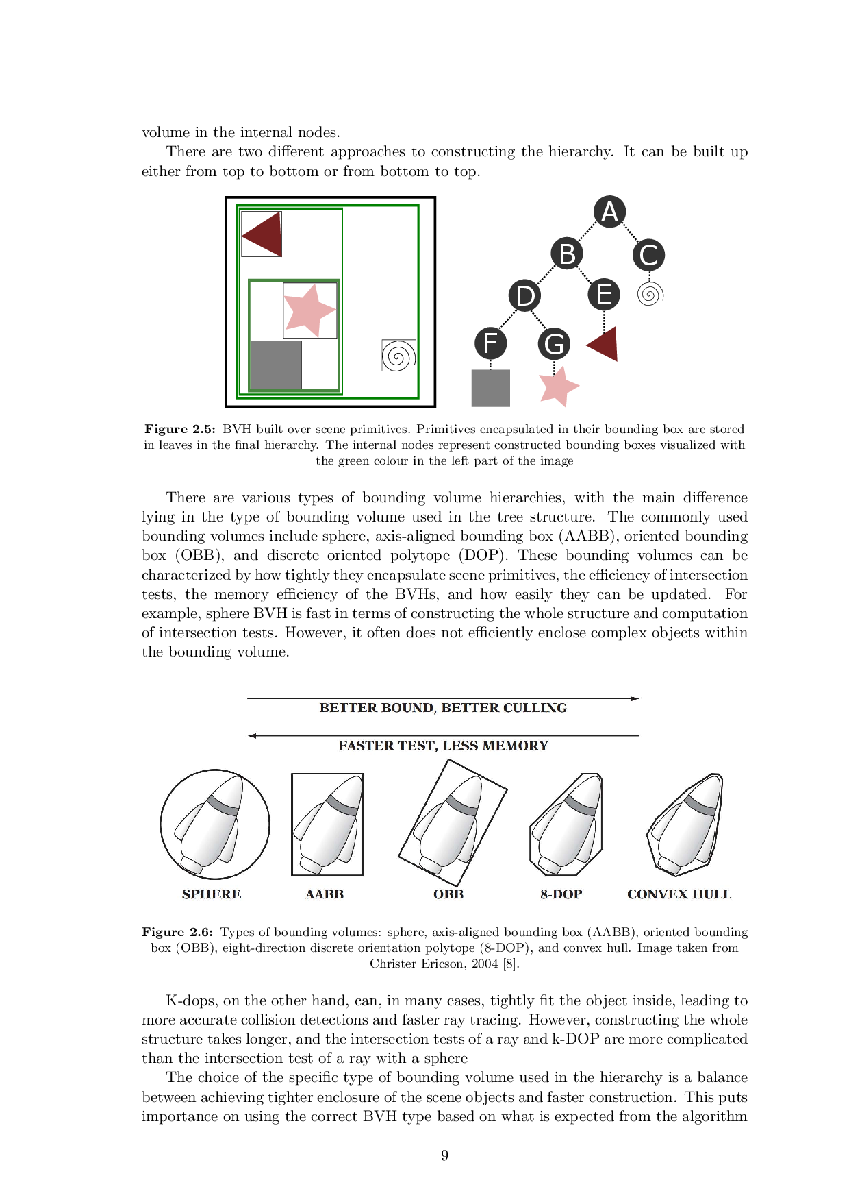Tato práce se zabývá metodami stavby hierarchie obálek (BVH), které jsou využitelné v algoritmech sledování paprsku. Soustředí se na techniky aplikovatelné pro interaktivní aplikace pracující s dynamickými scénami. Na základě důkladné analýzy těchto technik dva efektivní algoritmy na stavbu BVH, využívající těsná obálková tělesa, jako například OBB a ODOP, byly naimplementovány. Pro implementaci a integraci těchto metod do jednotného frameworku byly využity dostupné kódy v jazyce CUDA. Výsledné BVH jsou porovnány na základě časové náročnosti jejich stavby a rychlosti sledování paprsku otestované na šesti různých scénách. Práce dále diskutuje takzvaná úzká místa jejich konstrukce a navrhuje možná vylepšení.